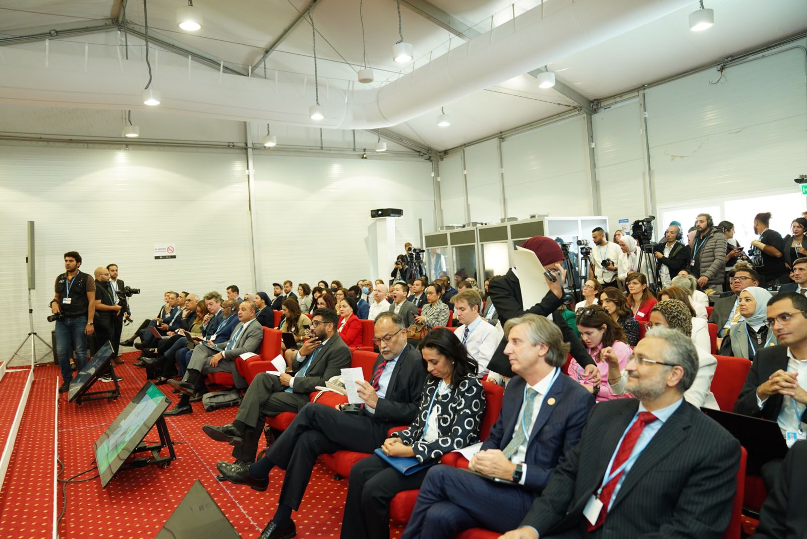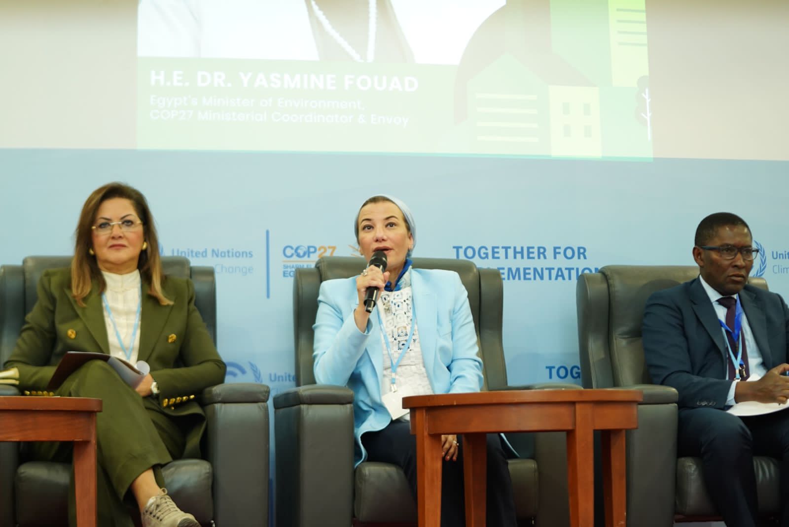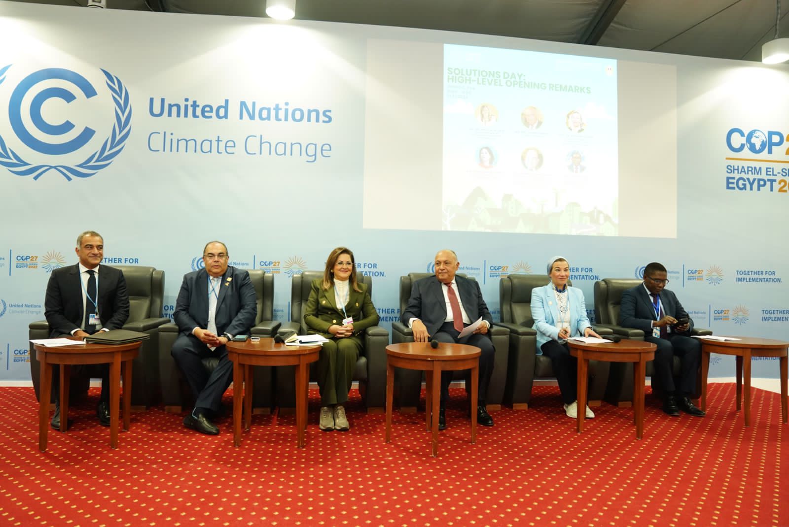 شاركت الدكتورة ياسمين فؤاد وزيرة البيئة والمنسق الوزاري ومبعوث مؤتمر المناخ COP27 في الافتتاح رفيع المستوى ليوم الحلول، ضمن الأيام الموضوعية لمؤتمر المناخ COP27 المنعقد بمدينة شرم الشيخ، بحضور السفير سامح شكرى وزير الخارجية ورئيس المؤتمر، والدكتورة هالة السعيد وزيرة التخطيط والتنمية الاقتصادية والدكتور محمود محي الدين بطل العمل المناخي ومبعوث الأمم المتحدة للتنمية المستدامة ٢٠٣٠، والدكتورة مايا مرسي رئيس المجلس القومى للمرأة. والسفير سيلوين هارت المستشار الخاص للأمين العام للأمم المتحدة للمناخ، والسيدة انالينا بيربوك وزيرة الخارجية الألمانية، والسيد اليساندرو فراكاسيتي الممثل المقيم لبرنامج الأمم المتحدة للبيئة.