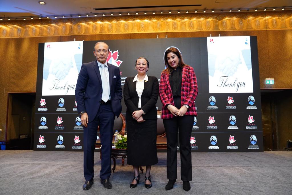 ووجه رئيس مجلس الأعمال المصرى الكندى الشكر للدكتورة ياسمين فؤاد وزيرة البيئة والمنسق الوزاري لمؤتمر المناخ علي تلبية الدعوة ومشاركتها في الحوار عن مؤتمر قمة المناخ وكذلك عن مبادرات وزارة البيئه والتى نجحت بإمتياز في إبراز انجازات الدولة المصرية في الكثير من الملفات البيئية وقد شرفنا بأنها تولت حقيبة وزارة البيئه في ٢٠١٨ وكانت تشغل قبله مساعد وزير البيئه في ٢٠١٤ وحصلت علي ماجيستير في العلوم البيئية والدكتوراه في العلوم السياسية ولها أكثر من ٢٠ عام خبرة في العمل البيئي والتعاون الدولي وتولت مناصب عديدة في الحكومة المصرية وعلي المستوي الأكاديمي تم اختيارها في ٢٠١٧ كمؤلفة رئيسية للفصل الرابع في التقرير الخاص لتغير المناخ.