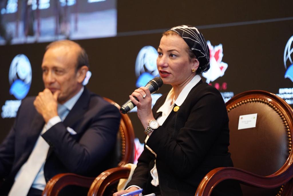 وأعربت الدكتورة ياسمين فؤاد عن سعادتها بالمشاركة بالندورة والحديث عن قصة نجاح مصر فى استضافة مؤتمر المناخ cop27 وهى قصة ملهمة نظرا للظروف والتحديات العالمية التى واجهت العالم خلال تلك الفترة والتى من أهمها الامن الغذائى وأمن الطاقة، إضافة إلى وجود قضية عالمية وجودية تحتم على الجميع الحفاظ على الكوكب الوحيد الذى نعيش عليه وليس لدينا خيار اخر له، وهو ما يلزمنا بالعمل على قضية التغيرات المناخية، مشيرة إلى بدء العمل منذ عام 1992 عندما اجتمعت الدول وقررت أن يكون هناك ثلاث اتفاقيات هم أساس التنمية المستدامة وهم اتفاقية الامم المتحدة لتغير المناخ واتفاقية الأمم المتحدة للتنوع البيولوجى واتفاقية الأمم المتحدة لمكافحة التصحر مضيفة أن من أعد هذه الاتفاقيات هو العالم المصرى الدكتور مصطفى كمال طلبه والذى شغل حين ذاك منصب المدير التنفيذى لبرنامج الأمم المتحدة للبيئة، كما كانت مصر سباقة فى تصديقها على الاتفاقيات الثالث عام 1993.