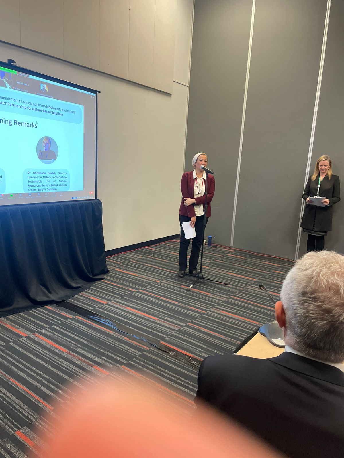 و أثنت الوزيرة المصرية على التمويل الذي خصصته ألمانيا بمقدار ١.٥ مليار دولار سنويا للحلول القائمة على الطبيعة ، كما أثنت على إدراج اليابان للحلول القائمة على الطبيعة ضمن خطتها الوطنية للتكيف وعملها على اعلان خطة جديدة للتنوع البيولوجي، مؤكدة أنها خطوات يمكن للعديد من الدول الاستفادة منها.