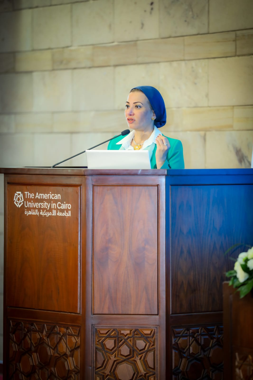 جاء ذلك خلال الكلمة التى ألقتها الدكتورة ياسمين فؤاد وزيرة البيئة فى إفتتاح النسخة الثامنة من المؤتمر السنوي للبحث والإبداع ٢٠٢٣، والذي تنظمة الجامعة الأمريكية بالقاهرة الجديدة، خلال الفترة من ١٢إلى ١٦ مارس الجارى بحضور الدكتور أحمد دلال رئيس الجامعة الامريكية بالقاهرة، الدكتور أدهم رمضان وكيل الشئون الأكاديمية وعميد شئون الدراسات العليا ومنسق مبادرة التغير المناخي بالجامعة، والدكتور إيهاب عبد الرحمن وكيل الشئون الأكاديمية بالجامعة، والدكتور محمد حمزة ممثل الحكومة بالجامعة الأمريكية.