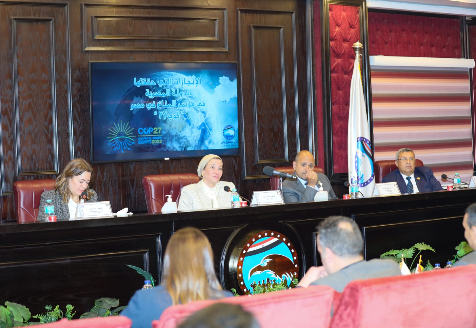 جاء ذلك خلال كلمة الدكتورة ياسمين فؤاد وزيرة البيئة فى ندوة نظمتها‎‎ الأمانة العامة لحزب مستقبل وطن حملت عنوان الانجازات التي حققتها الدولة المصرية في مؤتمر المناخ cop27 بمقر الحزب، حيث استقبلها المستشار عبد الوهاب عبد الرازق رئيس مجلس الشيوخ ، رئيس حزب مستقبل وطن وبحضور النائب حسام عوض الله رئيس لجنة الطاقة والبيئة بمجلس النواب، النائبة رشا رمضان وكيل لجنة الطاقة والبيئة، أمينة المرأة بمجلس النواب وعدد من أعضاء مجلسي النواب والشيوخ وقيادات الحزب ، وشباب وأمناء الحزب فى المحافظات.