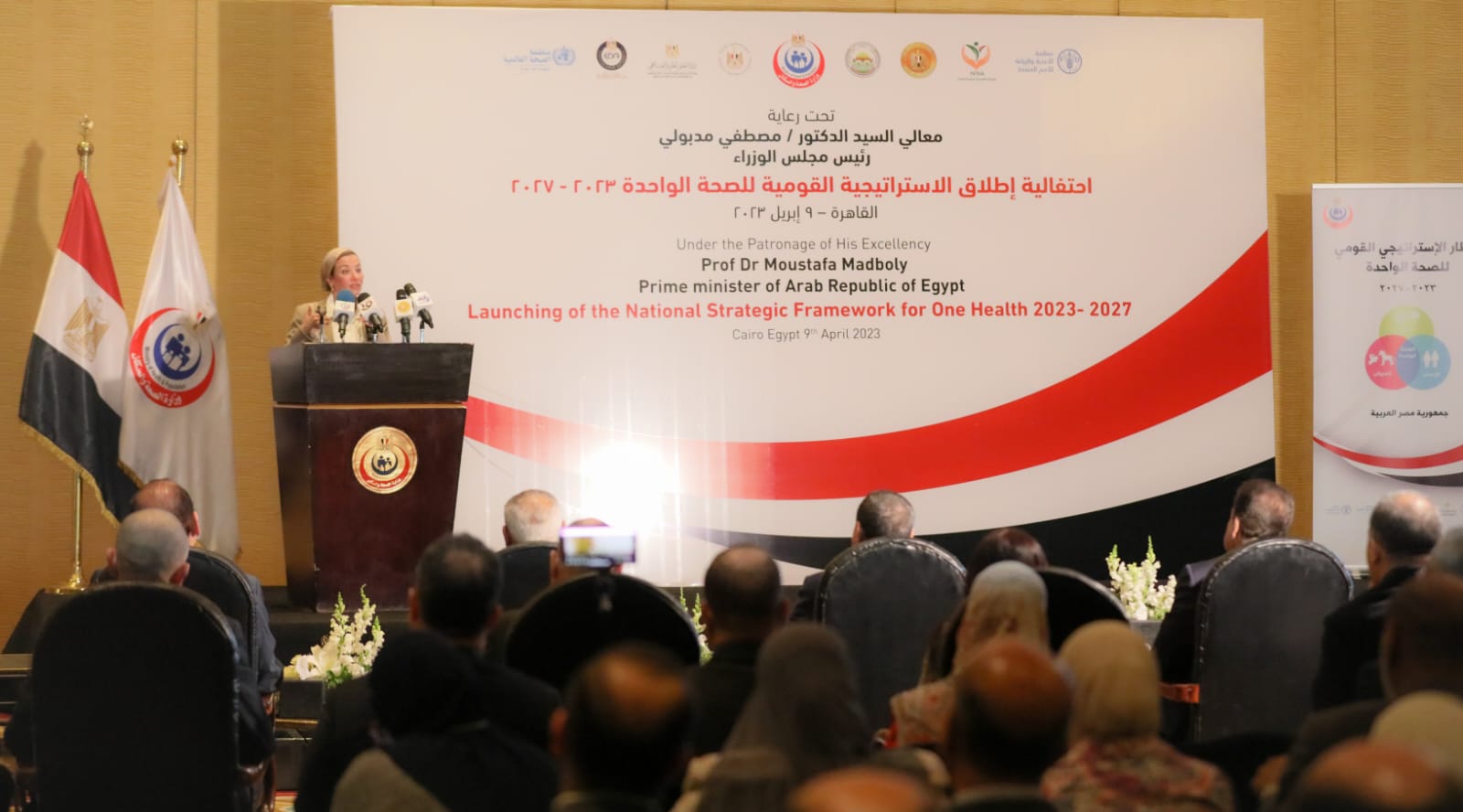 جاء هذا فى كلمة الدكتورة ياسمين فؤاد وزيرة البيئة خلال إطلاق جمهورية مصر العربية رسميا "الإطار الإستراتيجي القومي للصحة الواحدة 2023 –2027" كخارطة طريق مشتركة للصحة الواحدة بين وزارة الصحة والسكان ووزارة الزراعة واستصلاح الأراضي ووزارة البيئة، بالتعاون مع منظمة الصحة العالمية في مصر ومنظمة الأمم المتحدة للأغذية والزراعة (الفاو) في مصر، وذلك بحضور الدكتور خالد عبدالغفار وزير الصحة، والدكتور أيمن عاشور وزير التعليم العالي والبحث العلمي، واللواء هشام آمنة وزير التنمية المحلية وممثلى مجلس النواب والشيوخ وممثلي الوزارات المعنية والمنظمات الدولية.