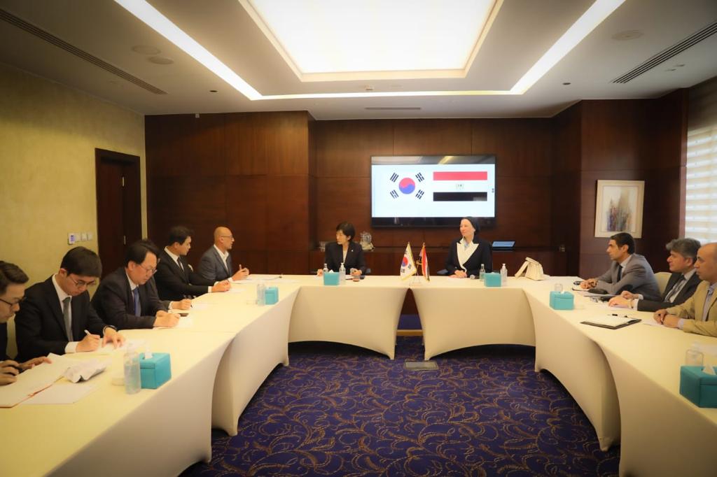 التقت الدكتورة ياسمين فؤاد وزيرة البيئة مع السيدة "هان هوا-جين" وزيرة البيئة بكوريا الجنوبية، لمناقشة سبل تعزيز الاستثمارات الكورية في مصر في منظومة إدارة المخلفات، وتسليط الضوء على الفرص الاستثمارية الواعدة للقطاع الخاص الكوري في مجال البيئة وخاصة المخلفات،وبحث فرص التعاون المشترك في مجال الحد من استخدام الأكياس البلاستيكية أحادية الاستخدام بالشراكة مع القطاع الخاص، وذلك بحضور السفير الكوري هونغ جين ووك، والدكتور طارق العربي رئيس جهاز تنظيم إدارة المخلفات، والوفد المرافق للوزيرة الكورية، وقيادات وزارة البيئة.