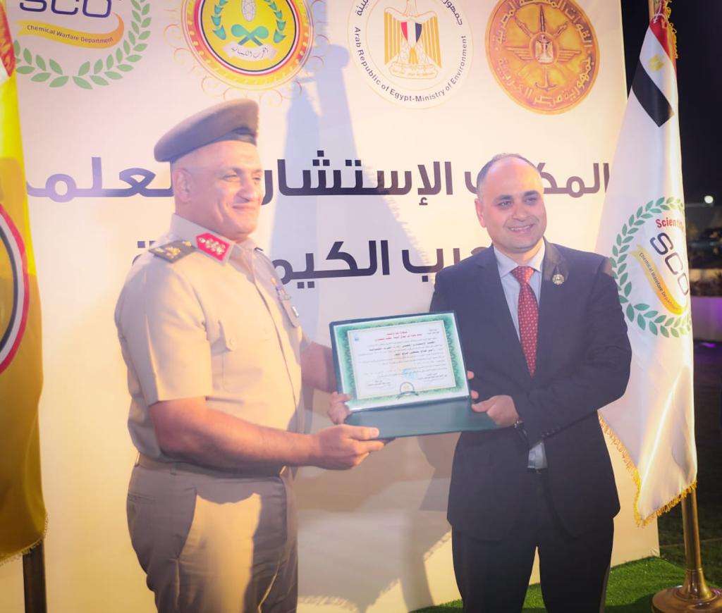 وخلال الحفل قام الدكتور على أبو سنة الرئيس التنفيذي لجهاز شئون البيئة بتسليم شهادة الإعتماد للمكتب الإستشاري للسيد الدكتور اللواء أ.ح عبدالحميد سيد أحمد مدير الحرب الكيميائية، وعرض فيلم تسجيلي للمكتب الإستشاري العلمي، وجلسة حوارية لتوضيح أنشطة المكتب الإستشاري العلمي للإدارة الحرب الكيميائية.
