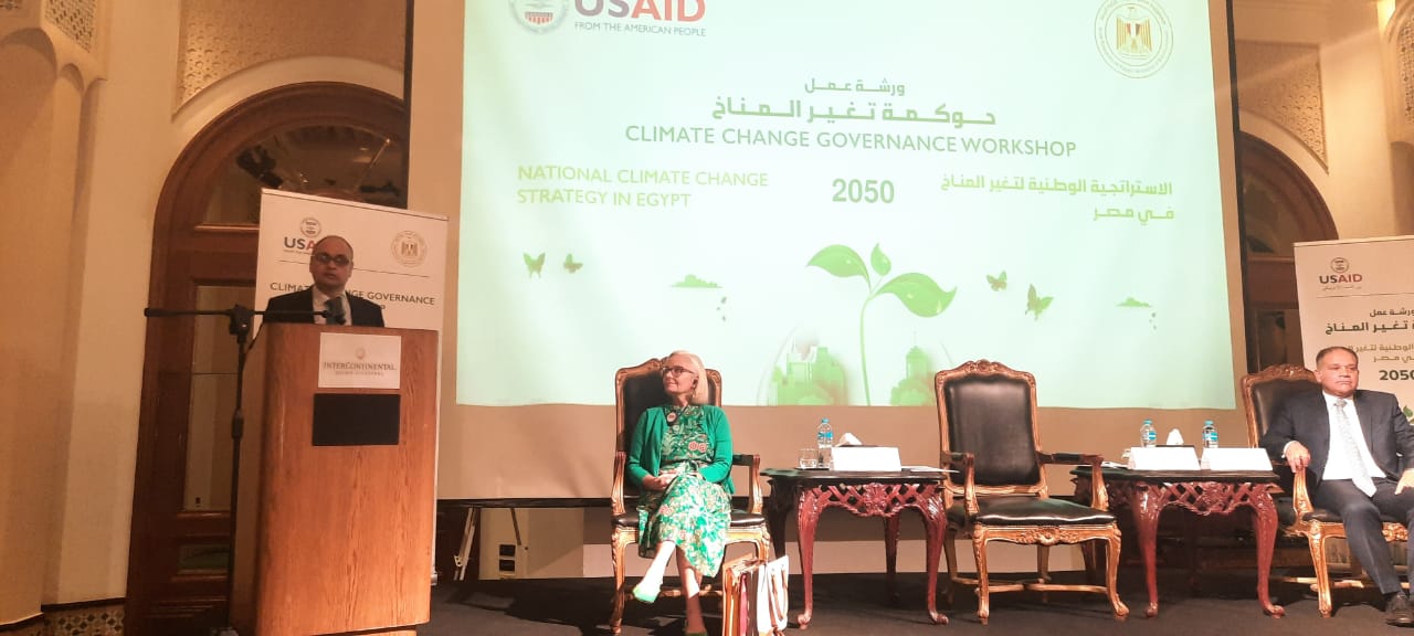 جاء ذلك خلال كلمة الدكتور على أبو سنه رئيس جهاز شئون البيئة التى ألقاها نيابة عن الدكتورة ياسمين فؤاد وزيرة البيئة خلال ورشة عمل "حوكمة تغير المناخ: الاستراتيجية الوطنية لتغير المناخ في مصر- 2050 "، والتى يعقدها مشروع الحوكمة الاقتصادية الممول من الوكالة الامريكية للتنمية الدولية (USAID) للتشاور مع الخبراء لإعداد مقترح لإطار خطة العمل لتحقيق الهدف الثالث من الاستراتيجية الوطنية لتغير المناخ والمتعلق بتحسين حوكمة وإدارة العمل في مجال تغير المناخ؛ بهدف الوصول إلى خطة تنفيذية تشاركية للهدف الثالث من الاستراتيجية، بحضور الدكتور خالد زكريا أمين استشاري أول مشروع الحوكمة الاقتصادية ، والسيدة ليزلى ريد مدير بعثة الوكالة الأمريكية للتنمية الدولية في مصر.