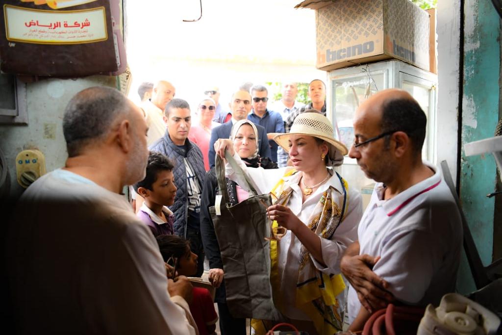 وخلال جولتها قامت الوزيرة بتوزيع عدد من الحقائب القماش على السيدات وأهل القرية من المزارعين وأصحاب المحلات لتوعيتهم بأهمية الحد من استخدام الأكياس البلاستيكية أحادية الاستخدام، وخطورة الإفراط فى استخدامها على البيئة وصحة المواطنين.