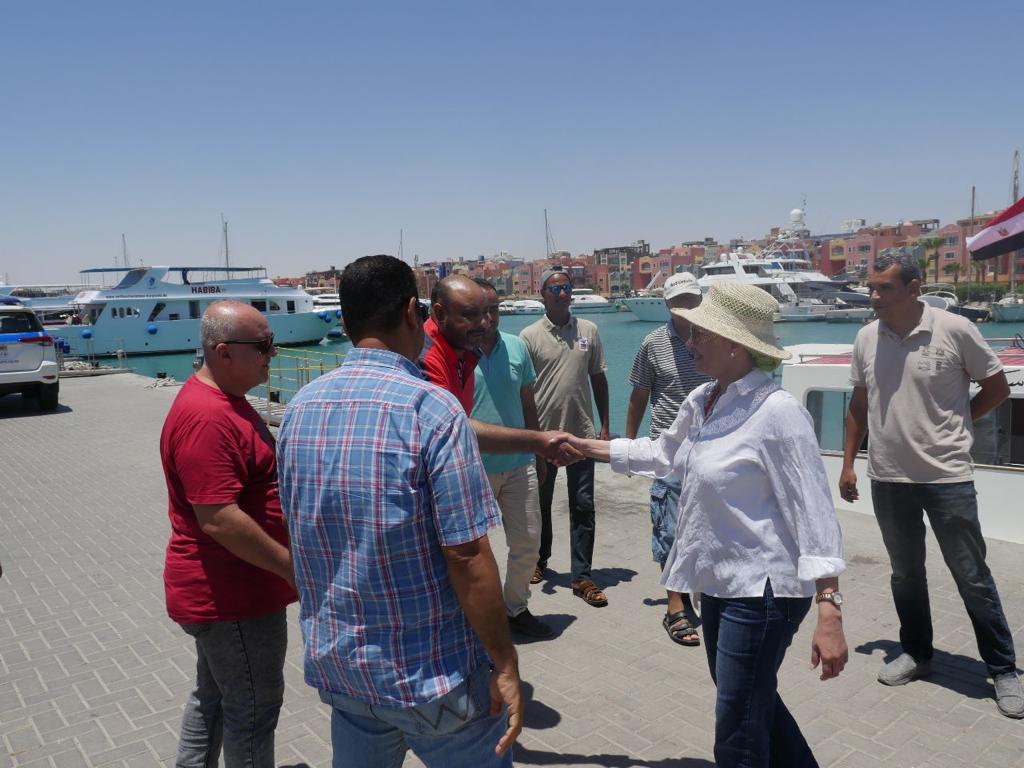 قامت الدكتورة ياسمين فؤاد وزيرة البيئة صباح اليوم بقيادة فريق محميات البحر الأحمر فى جولة تفقدية لشواطىء الغردقة ، حيث أستقلت وزيرة البيئة أحد مراكب محميات البحر الأحمر وبدأت جولة التفقد والاستطلاع من ميناء اليخوت مرورا بجزيرة أبو منقار وشعب السقالة وانتهاءا بجزيرة الجفتون. وأكدت الدكتورة ياسمين فؤاد خلال الجولة أنه تم تفقد أحدى المراكب السياحية الموجودة بتلك المنطقة للتأكد من توافر كافة الإشتراطات البيئية و عوامل السلامة والأمان لممارسى الأنشطة البحرية الموجودين داخل المركب ، كما تم التأكد من عدم وجود أى ممارسات بيئية خاطئة. وفى ذات السياق فقد أطمئنت وزيرة البيئة من مدير محميات البحر الأحمر أنه تم توزيع كافة العاملين بمحميات البحر الأحمر على الأماكن المختلفة على طول الساحل مثل مناطق الجونة وخليج أبو سومة وسهل حشيش وخليج مكادى لإستمرار قيامهم بعمليات المسح البحرى والتى بدأت منذ أمس، وتأكدها من توافر كافة اجراءات السلامة والأمان لهم ، وكذلك تم التأكيد على الإلتزام بالتعليمات التى أصدرتها وزارة البيئة بالتعاون مع محافظة البحر الأحمر خلال الأسبوع الماضى وذلك من قبل مراكز الغوص والمراكب والفنادق السياحية. وأوضحت د. ياسمين فؤاد أنه يوجد فريق أخر من محميات البحر الأحمر يعمل على طول الساحل للتأكد من التزام الشواطىء بالاشتراطات البيئية وبإجراءات السلامة والأمان لممارسى الأنشطة البحرية والحفاظ على البيئة البحرية. جديرا بالذكر أن الدكتورة ياسمين فؤاد وزيرة البيئة قد قامت أمس بالإشراف والمتابعة لأعمال الرصد الساحلي من قبل فريق عمل المحميات بالبحر الأحمر بمنطقة شمال مدينة الغردقة وجنوبا بنطاق مناطق مجاويش وسهل حشيش ومكادي للوقوف علي كافة الاستعدادات والتجهيزات لاستقبال اول ايام عيد الاضحى المبارك.